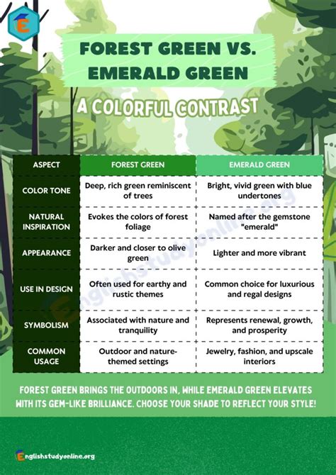 Emerald and forest green are both beautiful colors that have their own unique characteristics. Whether you're choosing a color for a fashion statement or a home decor accent, both colors have their own strengths and can be used in a variety of settings. By understanding the psychology and context of each color, you can make an informed decision on which shade of green is right for you.