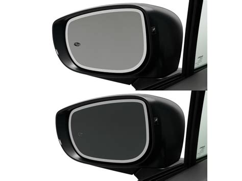 Auto dimming side mirrors are a type of mirror that can automatically adjust their brightness based on the surrounding light conditions. These mirrors are equipped with sensors that detect the amount of light in the environment and adjust the mirror's tint accordingly. When there is a bright light source, such as an oncoming car's headlights, the mirror will darken to reduce the glare. When the light source is dim, such as in a dark alley, the mirror will lighten to provide better visibility. This technology works similarly to auto dimming rearview mirrors, which have been around for a while.